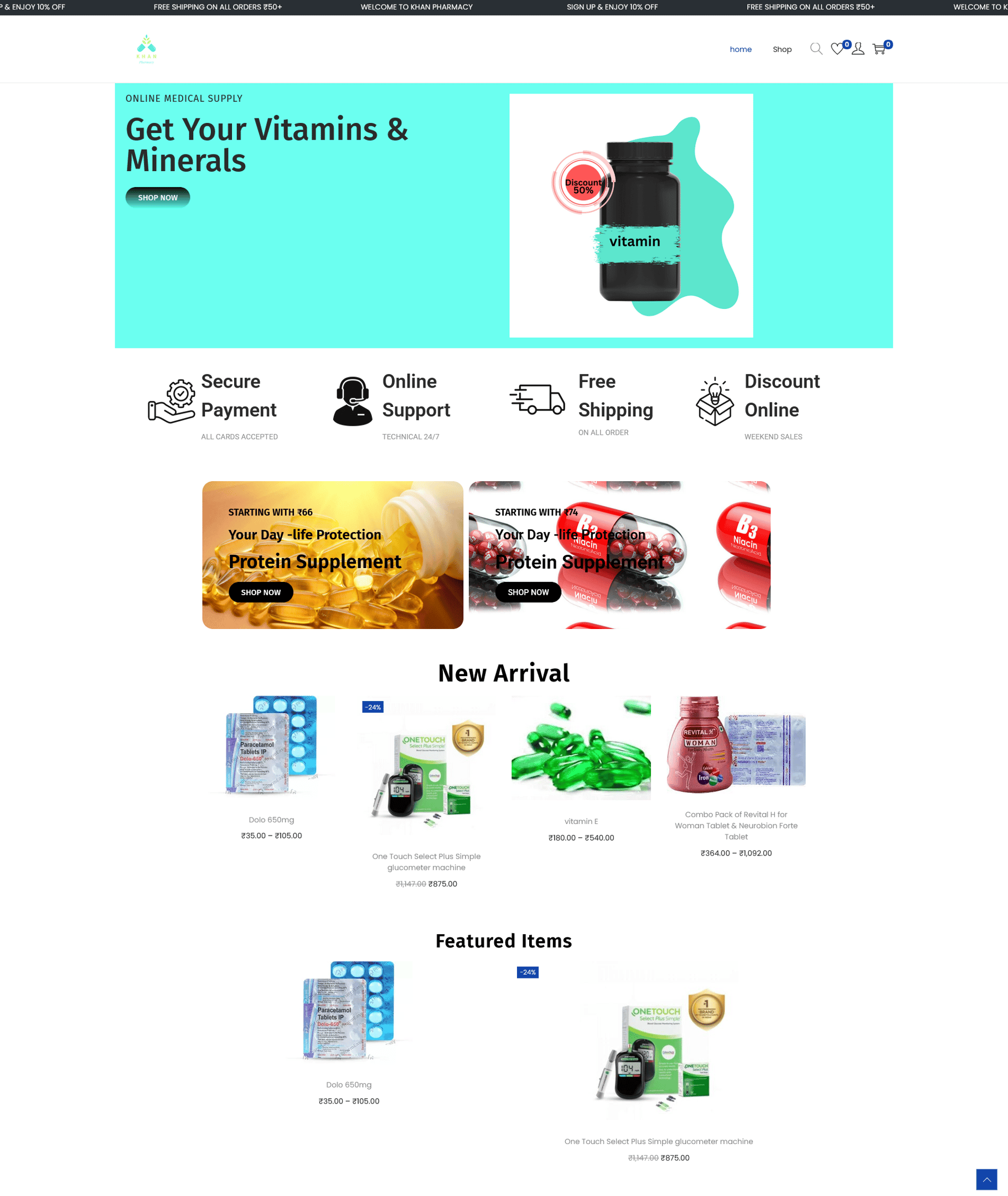 This demo project simulates creating a modern, customer-focused website for a pharmacy. The goal was to develop an online platform that allows customers to browse products, easily place orders, learn about services, and interact with the pharmacy online. Key features such as prescription refills, secure payments, and customer support were prioritized to provide a smooth and safe online shopping experience.